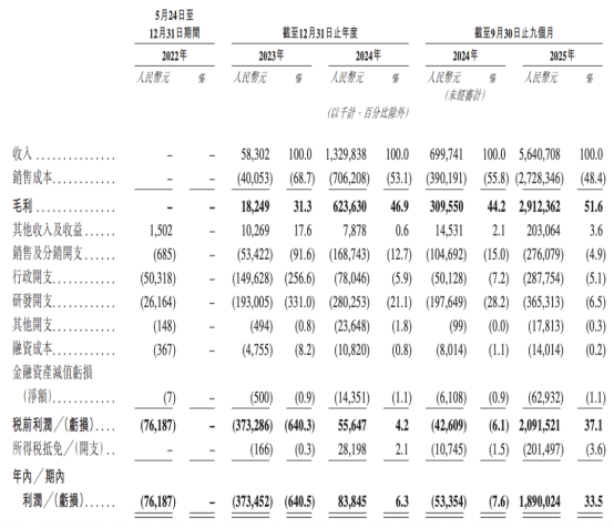 招股书披露的核心数据显示,2025年前三季度,公司实现营收56.41亿元,较2024年同期增长超7倍,这一数字已是2023年全年营收的96.7倍。